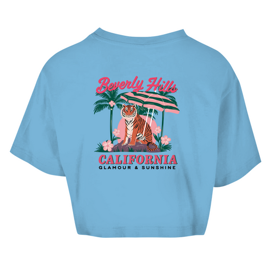 Damen Oversize Crop Top Tiger Sunshine